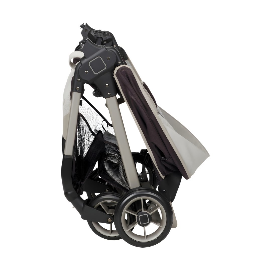 Beige convertible baby bassinet stroller with storage basket